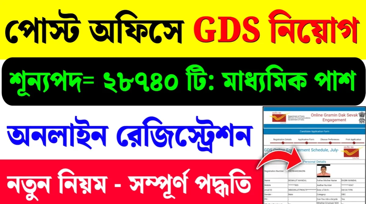 ২৮৭৪০ টি শূন্যপদে পোস্ট অফিসে GDS পোস্টে শুধুমাত্র মাধ্যমিক পাশে আবেদন চলছে। কোন লিখিত পরীক্ষা হবে না। আবেদন করার আগে জানুন বিস্তারিত তথ্য