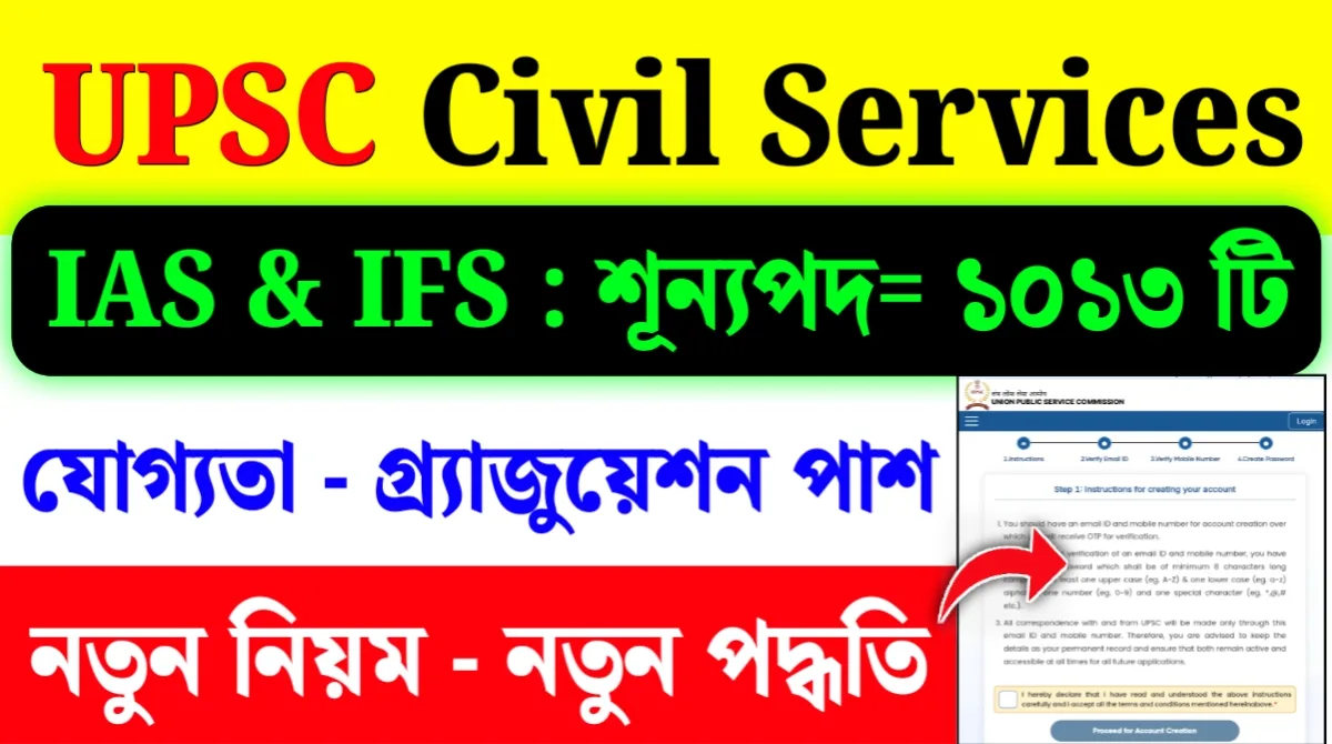 UPSC CSE ও IFoS 2026 পরীক্ষার অফিসিয়াল নোটিশ প্রকাশিত হয়েছে। এখানে জানুন আবেদন তারিখ, যোগ্যতা, বয়সসীমা, সিলেকশন পদ্ধতি, পরীক্ষার প্যাটার্ন ও বেতনের সম্পূর্ণ তথ্য এক জায়গায়।