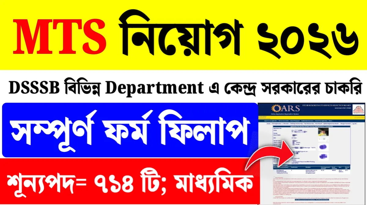 দিল্লি সাবঅর্ডিনেট সার্ভিসেস সিলেকশন বোর্ড (DSSSB) Multi-Tasking Staff (MTS) পদে নিয়োগের জন্য অফিসিয়াল নোটিফিকেশন প্রকাশ করেছে। যারা দশম শ্রেণি পাশ করে সরকারি চাকরি খুঁজছেন, তাদের জন্য এটি একটি ভালো সুযোগ। নিচে নোটিফিকেশন অনুযায়ী সমস্ত গুরুত্বপূর্ণ তথ্য সহজ ভাষায় তুলে ধরা হলো।