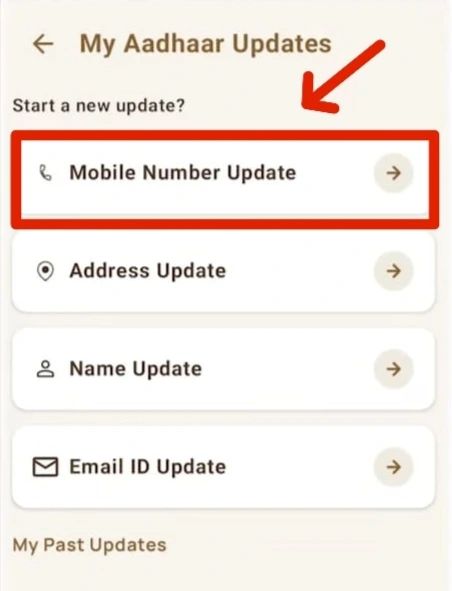 ৩) এবার মোবাইল নাম্বার লিঙ্ক অথবা আপডেট করার জন্য Mobile Number Update অপশনে ক্লিক করুন।