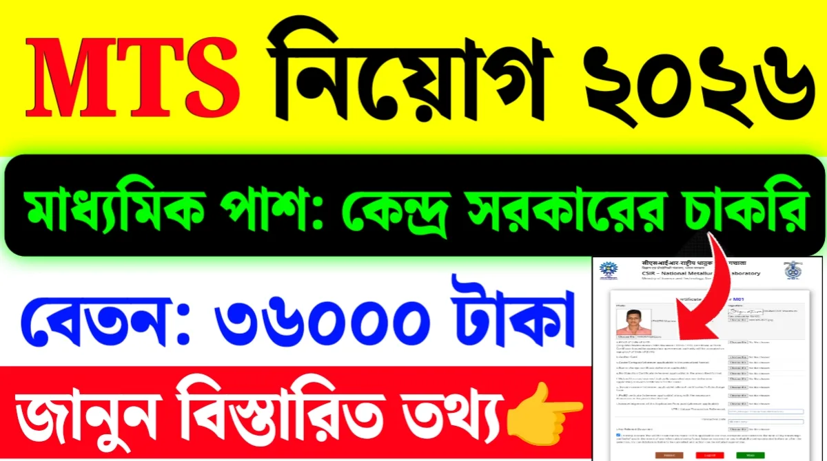 CSIR-NML MTS Recruitment 2026: আবেদন পদ্ধতি, যোগ্যতা, পরীক্ষা প্যাটার্ন ও গুরুত্বপূর্ণ তারিখ