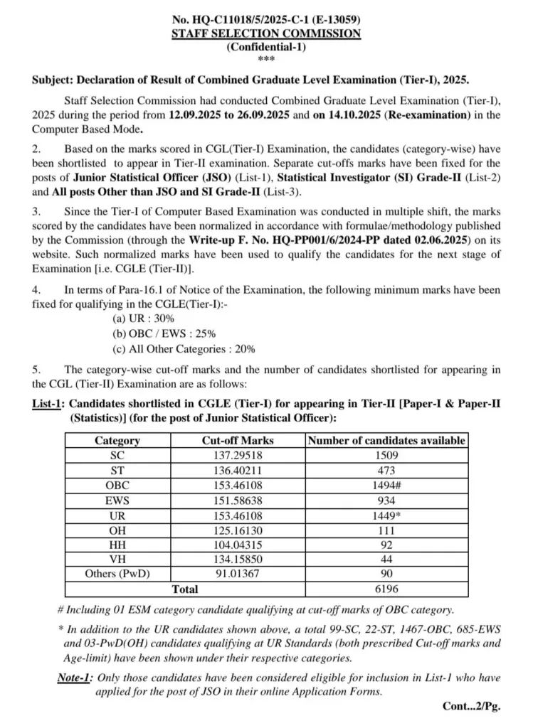 - SSC CGL 2025 Tier-1 Result Update: Tier-2 Exam Date, Cut-Off| বিস্তারিত তথ্য