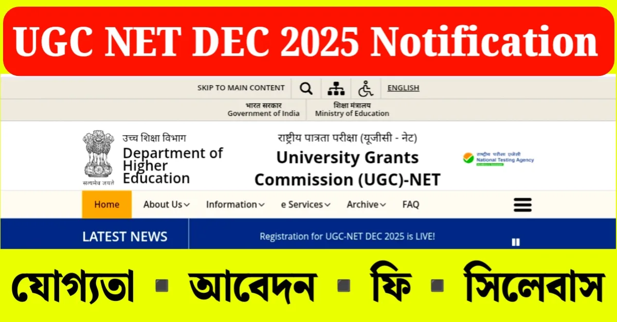 ugc net dec 2025 notification প্রকাশ করা হয়েছে। এখানে অনলাইন আবেদন করার আগে জানুন বিস্তারিত তথ্য।