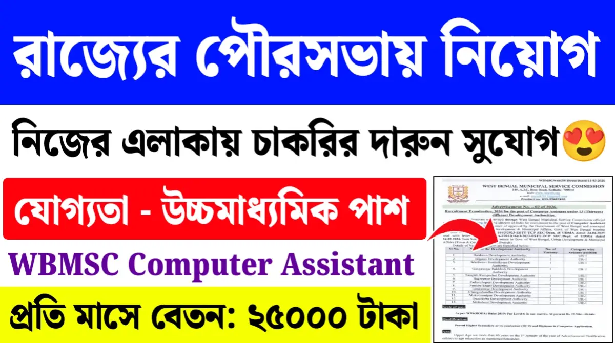 - WBMSC Computer Assistant Recruitment 2026: ১৩টি শূন্যপদ, যোগ্যতা, বয়স, বেতন ও আবেদন পদ্ধতি