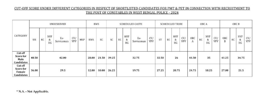 WBP Constable Official Cut Off Marks